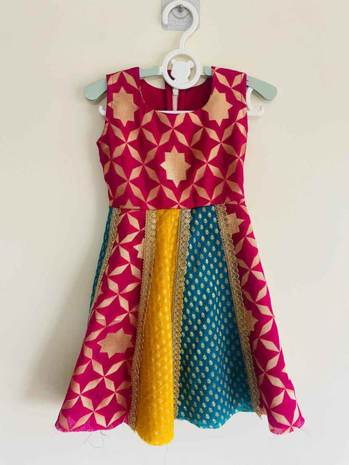 Let your little one shine bright in our “Chandrika Patchwork Twirl Dress”, an eye-catching ensemble inspired by vibrant Indian weaves and joyful celebrations. This dress celebrates colour, craft, and comfort, everything Little Haven stands for.