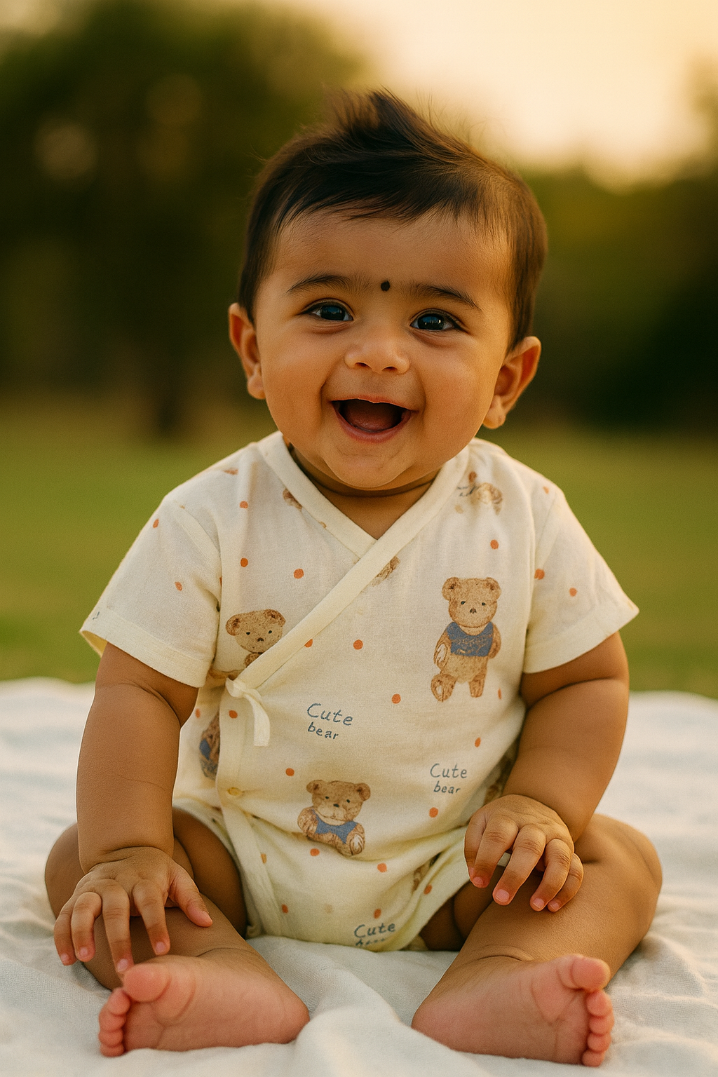 Color Base: Soft cream with subtle polka dots and adorable teddy bear prints in pastel tones