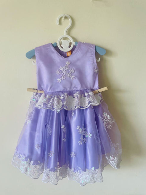 Let your little one twirl in elegance with our “Lavender Snowdrop” Embroidered Party Dress, a dreamy ensemble designed for special occasions. With delicate white floral embroidery and layers of soft tulle, this frock makes every little moment picture-perfect.