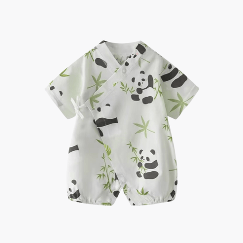 Say hello to laid-back cuteness with our Panda Bamboo Kimono Romper, a Little Haven exclusive. This airy, ultra-soft kimono-style romper is perfect, featuring playful pandas munching on bamboo amidst soft green leaves on a crisp white base. Designed with both baby’s comfort and parents’ convenience in mind, this romper is an easy favourite for daily wear and photo moments.